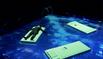 Visitors reach the upper surface of the glass pool by means of a ladder. Here, six soft mattresses float on the virtual water. These are supplied with video goggles. Shoals of plankton direct the bather to a free matress where he can relax and watch the animation Drift. This takes him off into the world of the virtual water and it´s inhabitants.